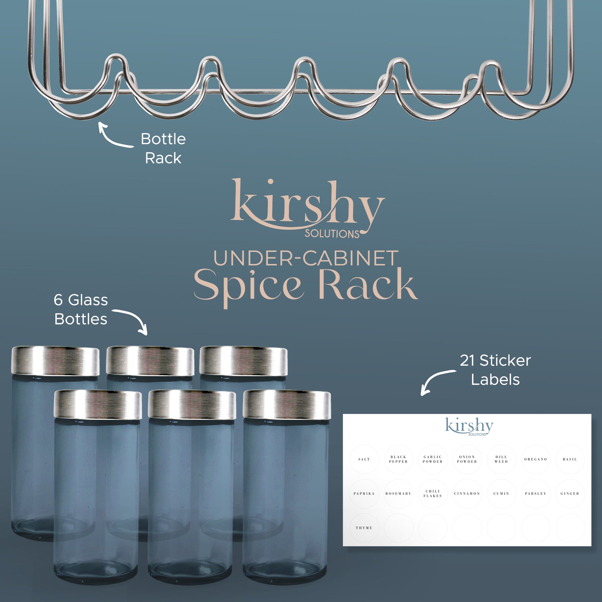 KIRSHY SOLUTIONS UNDER CABINET MOUNTED SPICE RACK SET WITH GLASS JARS & LABELS – THE ULTIMATE WAY TO ORGANIZE YOUR FAVORITE SPICES!